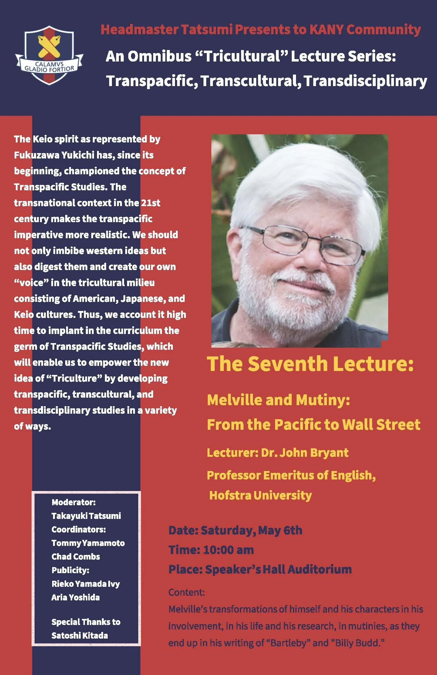 Keio Academy of New York invites Melville Society members and all interested to the seventh lecture in their Omnibus Tricultural Lecture Series: Transpacific, Transcultural, Transdisciplinary.